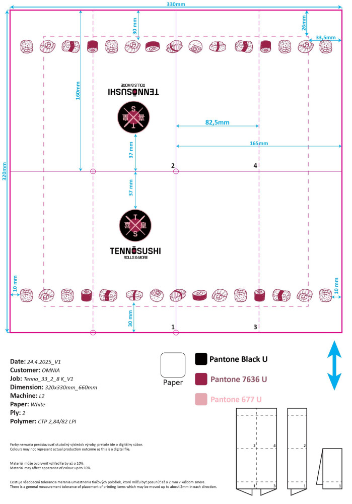 Obrúsky s potlačou Tenno Sushi 33/2/8 K TZ1214 (100ks x 20)