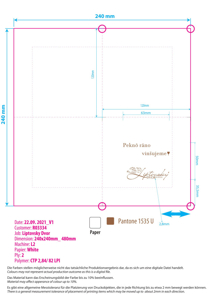 Obrúsky s potlačou Liptovský Dvor Peknô ráno vinšujeme 24/2/4 TZ462 (250ks x 12)