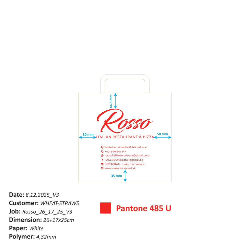 Papierová taška 26+17 x 25 cm biela Rosso [250ks]