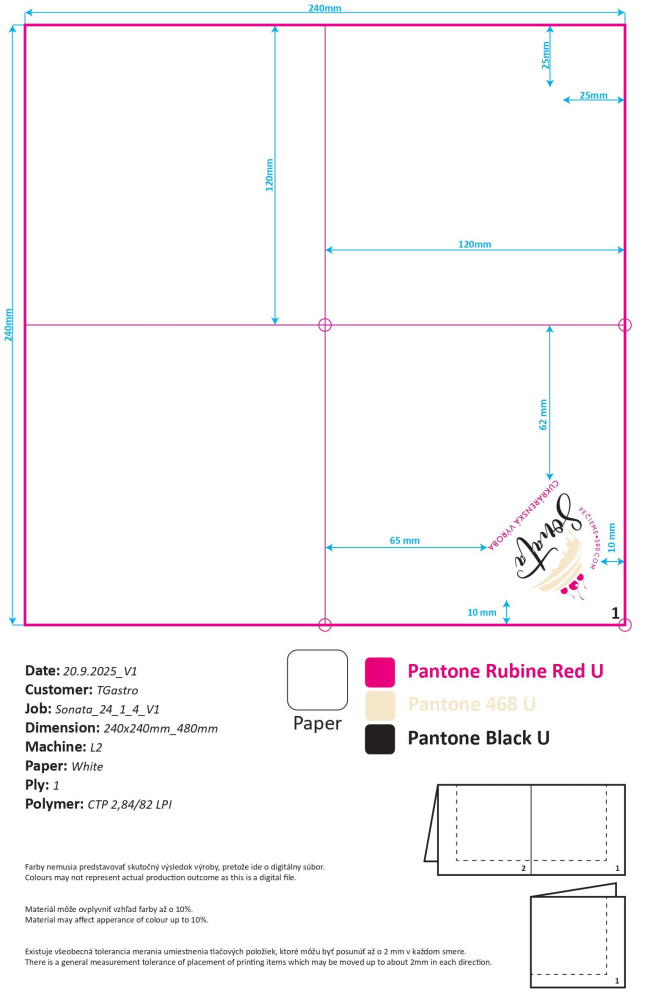 Obrúsky s potlačou Sonata 24/1/4 TZ (300ks x 12)