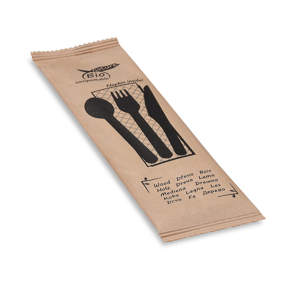 Priborová sada drevená(nôž-vidlička-lyžica-obrúsok) [50sád]