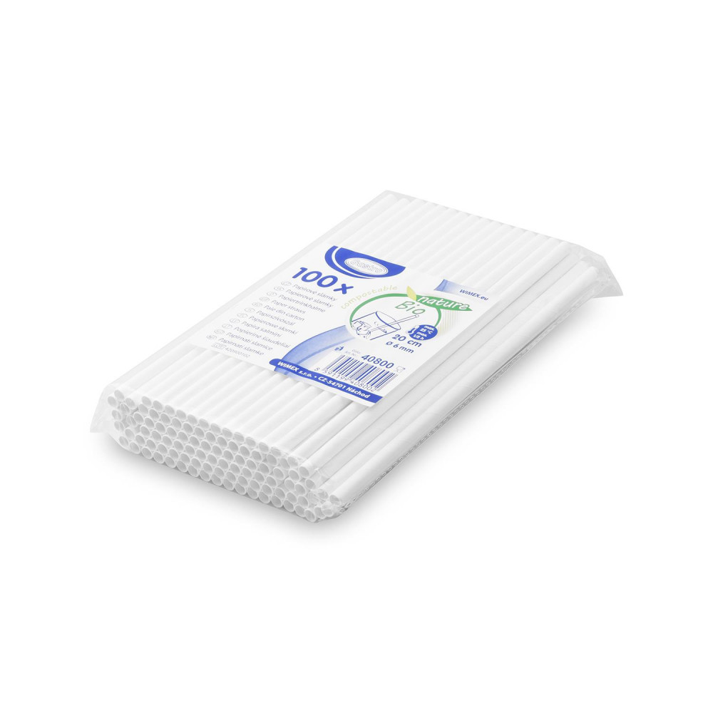 Slamka papierová biele Ø 6mm x 200mm [100ks]