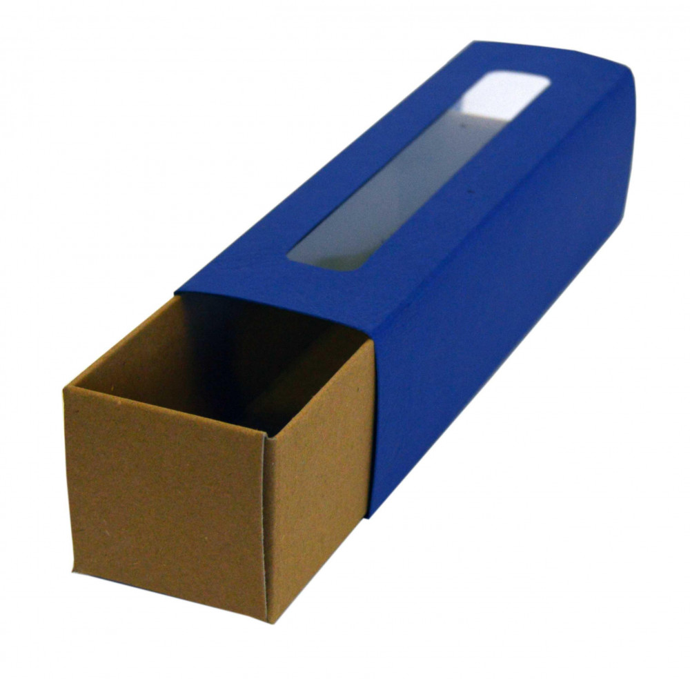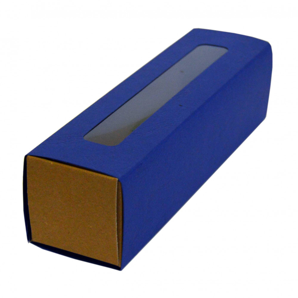 Krabička na makronky s okienkom koža 17 x 4,5 x 4,5cm tmavomodrá [25ks]