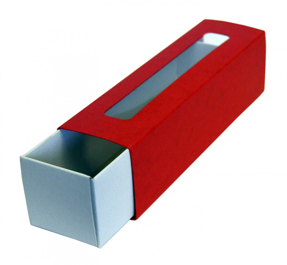 Krabička na makronky s okienkom prešpan 17 x 4,5 x 4,5cm červená [25ks]