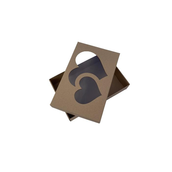 Krabica s okienkom SRDCIA 20 x 14 x 5,5cm hnedá [50ks]
