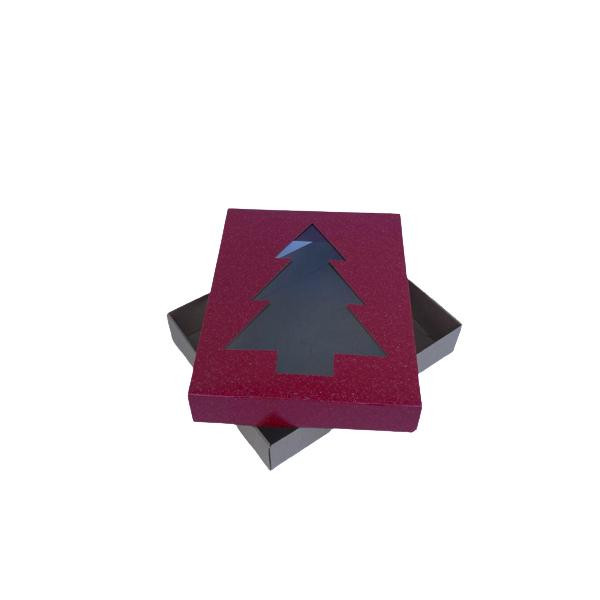 Krabica s okienkom STROMČEK 25 x 20 x 5cm červená "trblietky" [25ks]