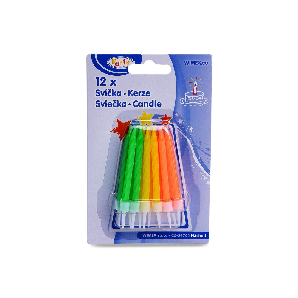 Narodeninová sviečka so stojančekom neónová 60mm [12 ks]