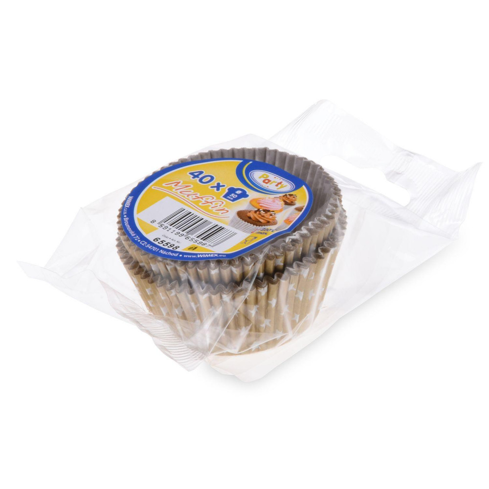 Cukr. košíčky zlaté s bielymi hviezdičkami Ø 50x30mm [40ks]